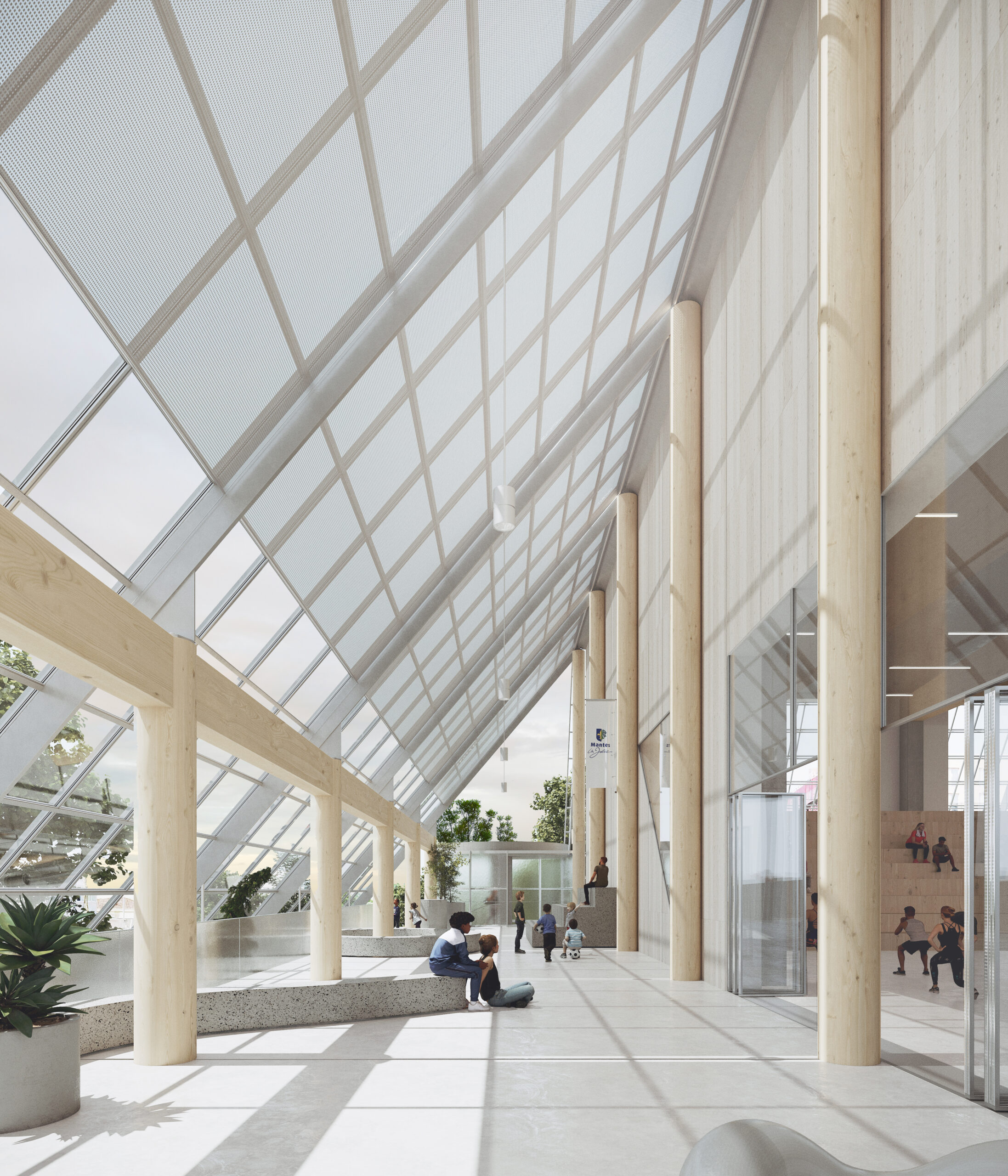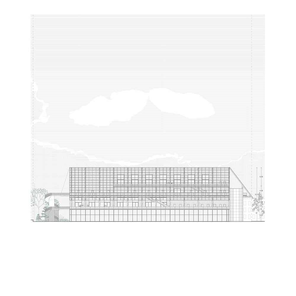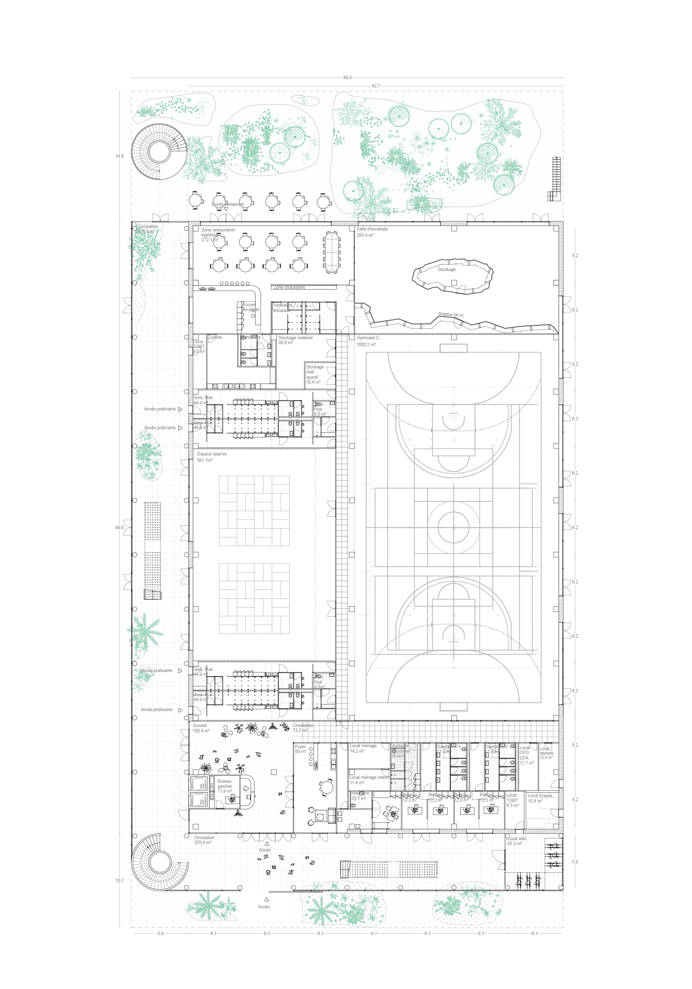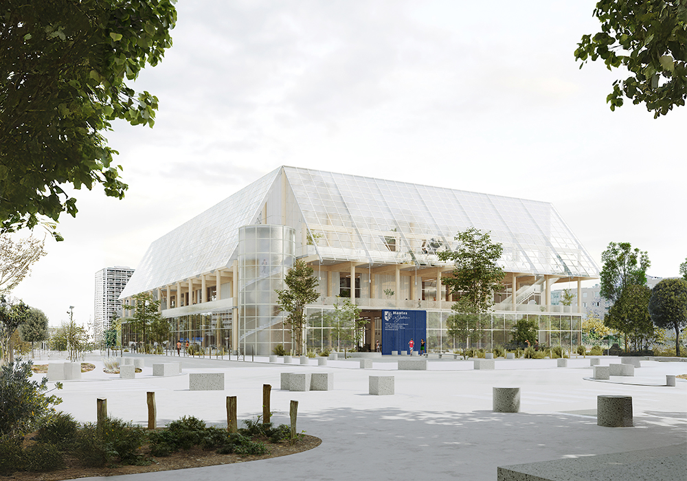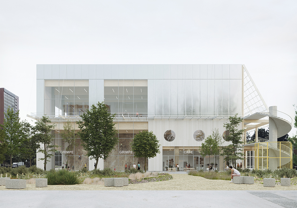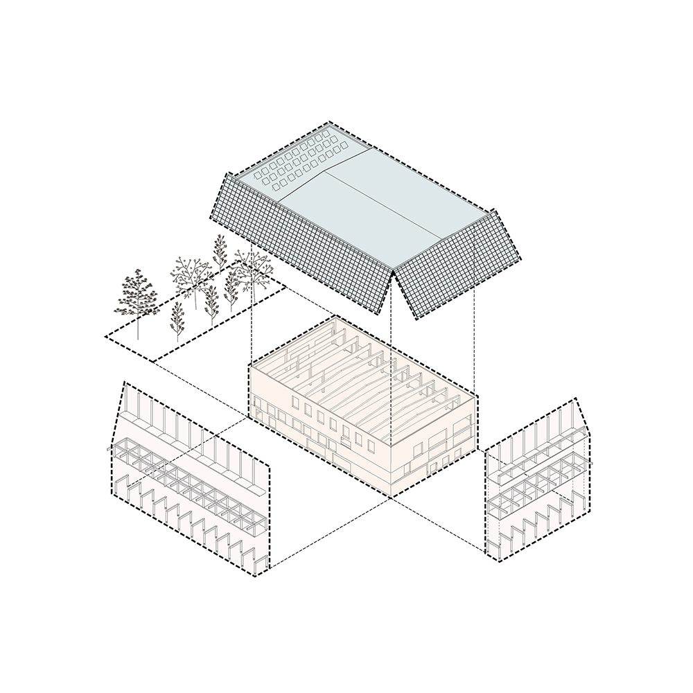 Le projet Sports Fertiles, imaginé dans la dynamique des JOP 2024, propose un complexe sportif emblématique au cœur du Val Fourré, alliant sport, nature et architecture dans une démarche sociale et environnementale forte. Implanté en entrée de quartier, il s’inscrit dans la continuité des espaces publics et intègre un jardin en pleine terre pour répondre aux enjeux climatiques. Son architecture bioclimatique, en bois et verre, associe compacité, transparence et sobriété énergétique. Notre proposition inversait le programme en plaçant le grand gymnase en hauteur, ouvert sur la ville et le grand paysage, comme un belvédère sportif. Articulant gymnase de proximité et lieu d’élévation, le bâtiment devient un lieu de vie, de rencontre et de transformation urbaine, catalyseur d’un renouveau pour le territoire.